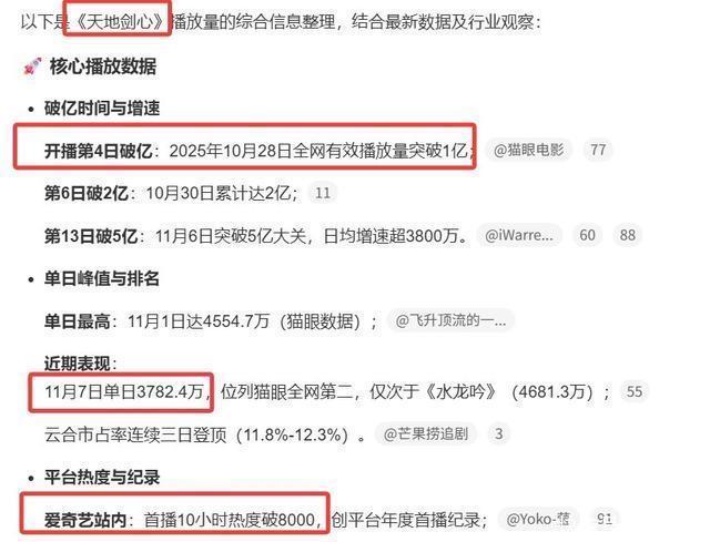 从统计出的数据来看,天然《寰球剑心》开播第1天爱奇艺站内10小时破8000,4天全网播放量破1亿。 但是最近几天,它的全网播放量守护在每天3000万独揽,属于是高开低走。