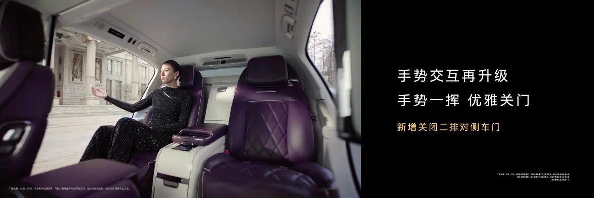 尊界S800常用常新,新春OTA新增全新智能迎宾灯语,专属“马到告捷”主题,尊享新年出施礼遇;手势控车再升级,新增手势一挥关闭二排对侧车门功能,交互更轻视、更优雅,让每一公里王人在引颈时期的表率。